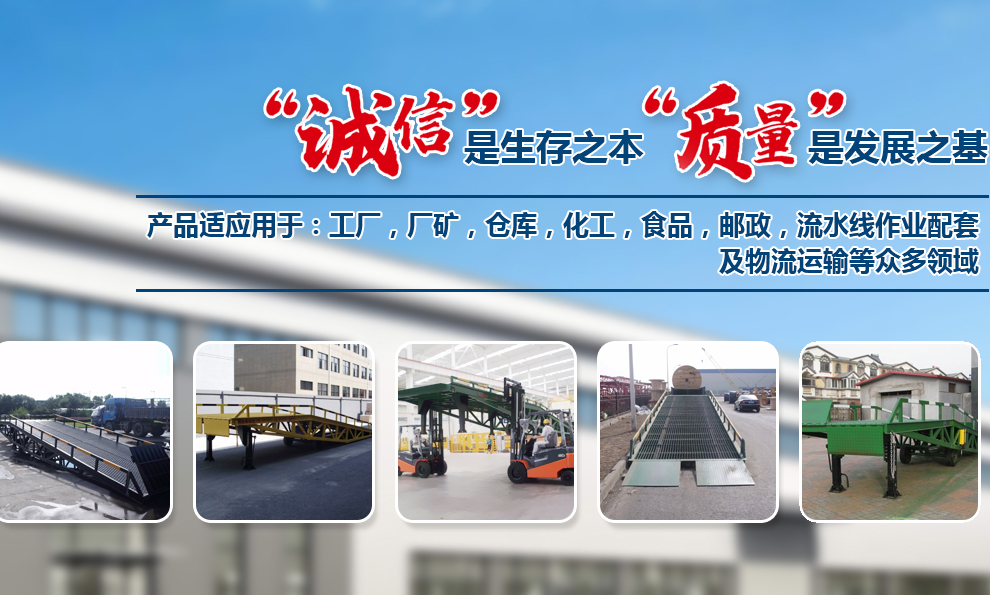 隨著國內及國際市場需求的不斷擴大,公司也在不斷引進國內外的先進技術來充實自身。公司先后設計研發出了,大小型貨車配裝的:汽車液壓尾板,叉車裝卸貨用的:移動式登車橋;庫房外貨臺配裝的:固定式液壓升降平臺(貨臺高度液壓調節板);庫房內外高層輸送貨物:導軌式升降貨梯,液壓升降平臺,旋轉液壓升降臺,及百噸位大型升降臺,等多種的先進裝卸裝備,適應用于:工廠,廠礦,倉庫,化工,食品,郵政,流水線作業配套及物流運輸等眾多領域。